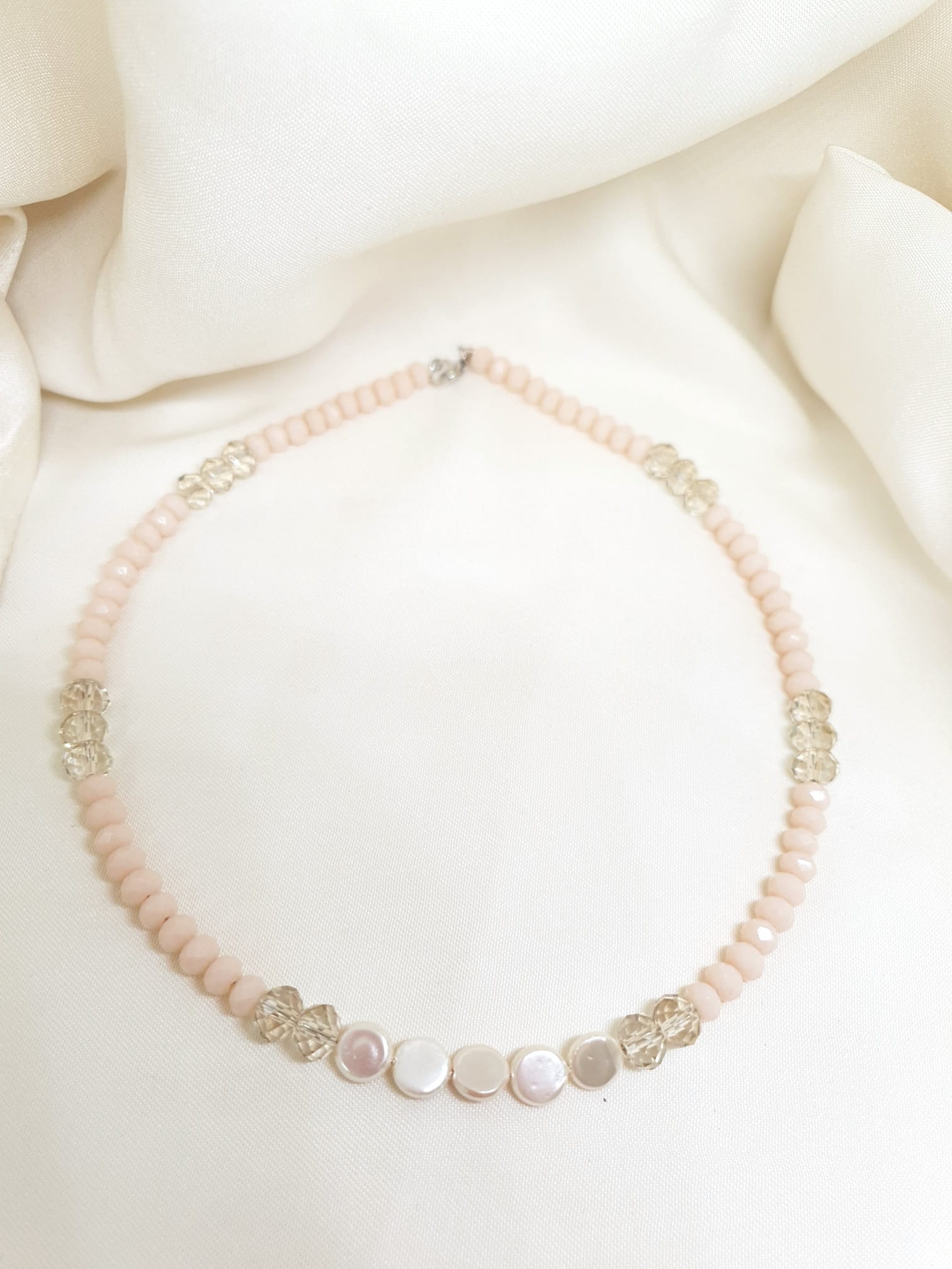 השרשרת הזו, עם קריסטל הפודרה שלה, היא תכשיט שמעביר תחושת עדינות ונעימות עם כל ניצוץ. הקריסטל, בצבע הפודרה הרך, משדר זוהר רומנטי ומעודן, ומחמם את הלב עם פשטות אלגנטית. העיצוב הנקי והחלק של השרשרת, ללא תליון, מבטיח שהיא תשתלב באופן מושלם עם כל הופעה, מה שהופך אותה לבחירה אידיאלית למי שמחפש תכשיט שמביא עימו יופי נעים ומעודן מבלי לנסות להבליט את עצמו. השרשרת הזו היא תוספת מושלמת לכל אוסף תכשיטים, מתאימה הן לשימוש יומיומי והן לאירועים מיוחדים, ומעניקה מגע של זוהר אישי לכל הופעה
